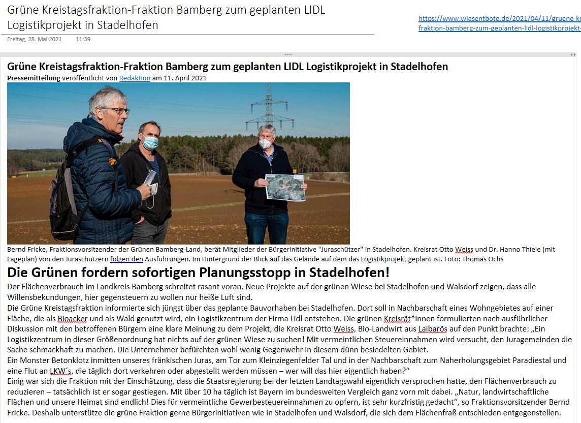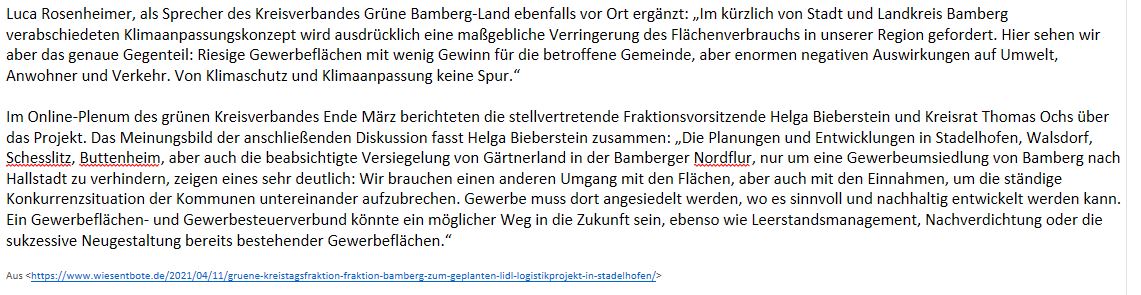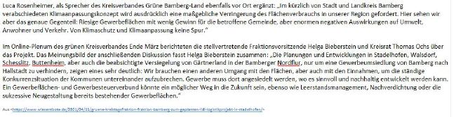 Umfassende inhaltlich-sachliche Aspekte und Einwände gegen die gesamte Bauleitplanung Hollfeld Nord. » mehr ...